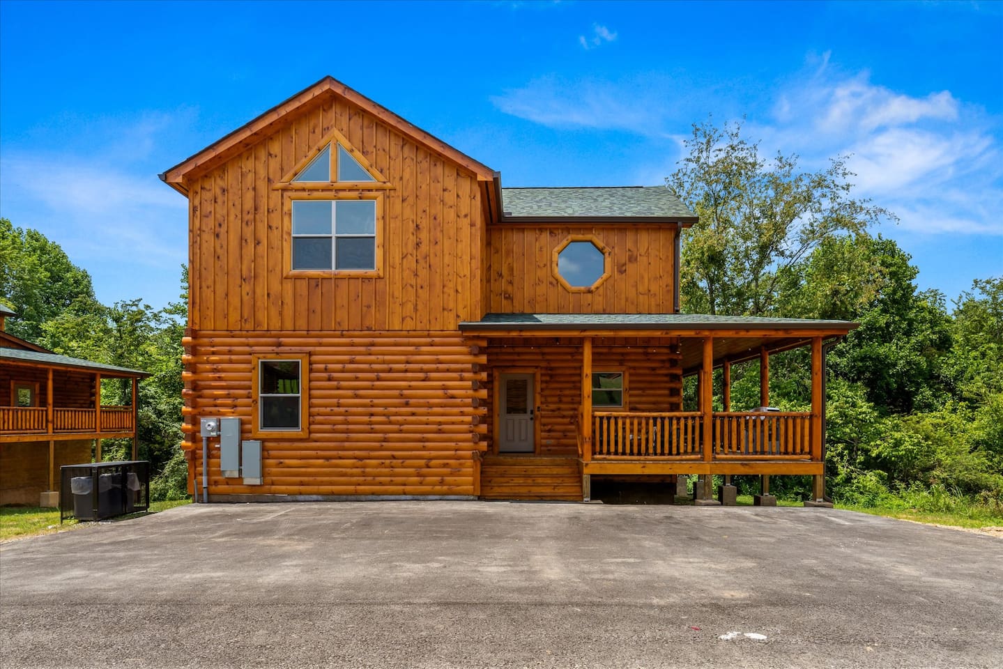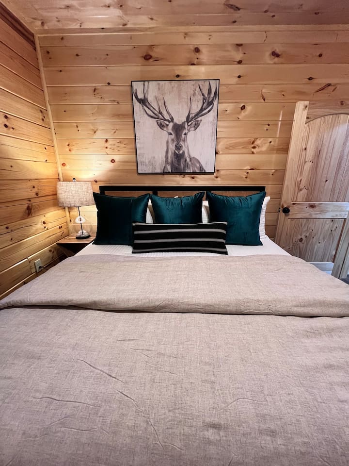 Welcome to Heritage Escape – Your private luxury retreat with an indoor pool, hot tub, game room, and wooded views, perfectly located just minutes from the heart of Pigeon Forge! This spacious 4BR/4.5BA cabin comfortably sleeps 12, with 4 en-suite bedrooms, a fully stocked chef-friendly kitchen, and everything you need for a relaxing getaway. 🛏 Layout Highlights: Main Floor: 2 King bedrooms with en-suites, open-concept kitchen/living room, fireplace, indoor pool room (keypad access), and wraparound porch with hot tub, propane BBQ, and seating Upstairs: Game room + 2 more bedrooms (1 King, 1 with 2 Queens) – all with en-suites 🎮 Entertainment & Comfort: Game Room: Foosball, multicade arcade, board games, flat-screen TV Living Room: Cozy fireplace + large TV Indoor Pool: Private and fully enclosed with ample seating Extras: Washer/dryer, Keurig, Instant Pot, Pack 'n Play, towels, starter supplies (soap, laundry, dish) 🚗 Private Driveway: Parking for 4 cars 🌲 Peaceful Setting: Quiet wooded views, yet only minutes from top attractions Recent guests rave: “Quiet and peaceful, but close to everything,” “Amazing amenities,” and “We can’t wait to come back!” Book Heritage Escape and experience the perfect mix of comfort, convenience, and luxury in the Smokies.