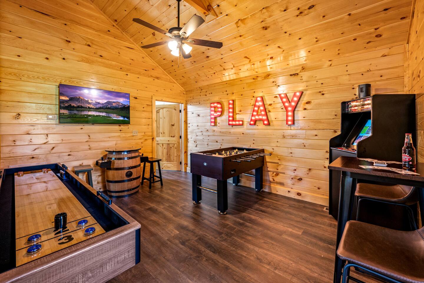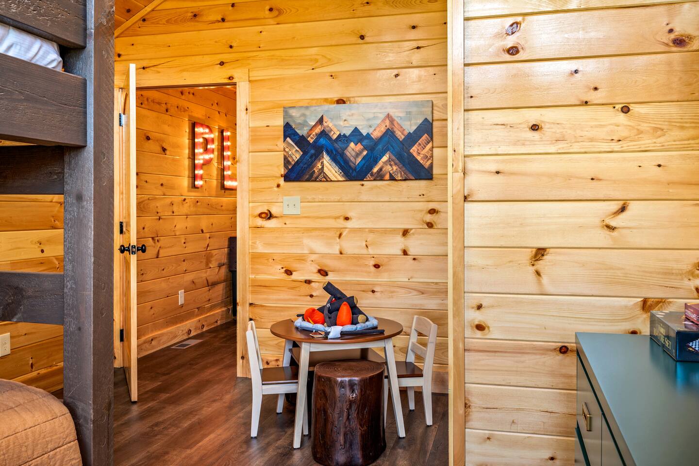 "Mountain Luxe Haven” is a luxurious vacation cabin located near downtown Pigeon Forge. Dollywood theme park created by country music legend Dolly Parton, is a major highlight. This expansive park offers thrilling rides, live entertainment, and a celebration of Appalachian culture This cabin is located just a block away from parkway and close to abundant activities Gatlinburg, Pigeon forge and Sevierville has to offer including : Hiking scenic trails, breathtaking panoramic views from vantage points, Biking, Zip lines, fishing, river tubing, Dolly Parton Stampede dinner show, Hatfield & McCoy dinner show, Mountain Valley winery, Titanic Museum, Rowdy Bear's smoky mountain snowpark, Smoky Mountain Alpine Coaster, and so much more! Nearby experiences with high ratings in Pigeon forge: Parkway: 0.25 miles Dollywood: 3 miles The Ripken Experience: 2.7 miles Hollywood Wax Museum: 3.5 miles In Gatlinburg Gatlinburg downtown: 7 miles Wild Bear Falls Water Park: 5 miles Anakeesta mountain top park and Chondola sightseeing: 6.6 miles Ripley's Aquarium of the smokies: 6.7 miles Ober Mountain Adventure Park and ski area: 9.5 miles Ober Mountain snow tubing: 9.8 miles In Sevierville Titanic museum NASCAR Speed Park NEARBY RESTAURANT & GROCERY Publix grocery is 2.9 miles and Walmart is 6.5 miles. - Texas Roadhouse: 0.3 mile - Pizza Hut: 0.4 mile - Cracker Barrel: 0.5 mile - Spice Express Indian Kitchen: 0.3 mile - Dolly Parton’s Stampede dinner show: 0.5 mile - Golden Corral Buffet & Grill: 1 mile - Pirate Voyage Dinner & Show: 2.5 miles - Hatfield & McCoy Dinner Feud: 4.1 miles