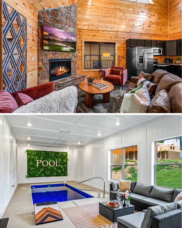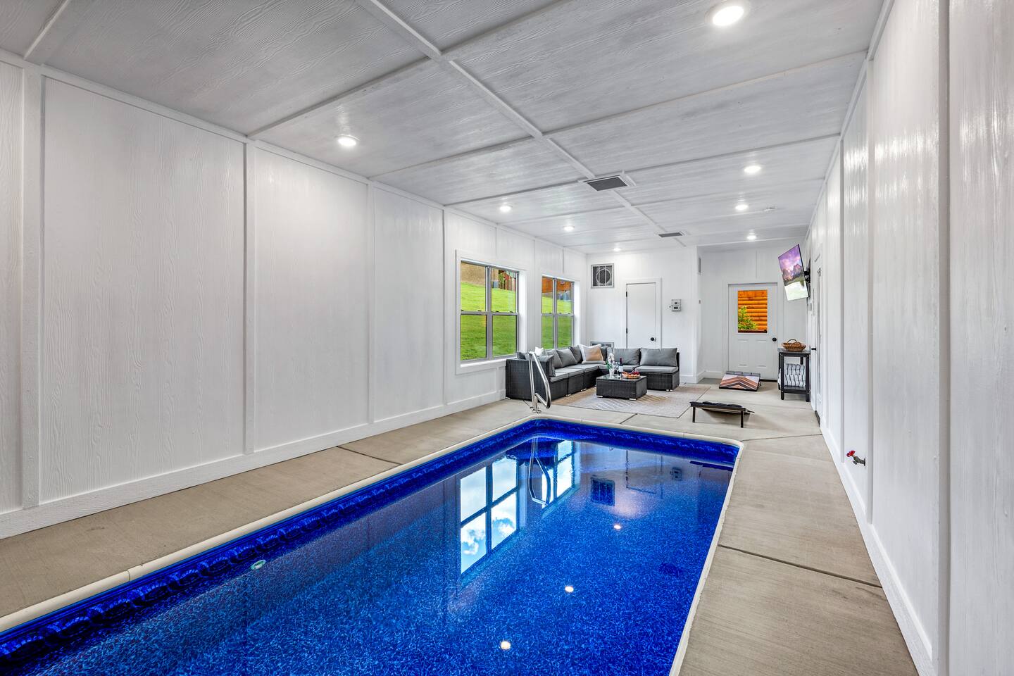 You'll have private access to the entire cabin, including the indoor pool, home theater, hot tub, and scenic wraparound deck. ✔ Self check-in with smart lock ✔ Free parking for up to 4 vehicles ✔ Easy access—paved roads, no steep climbs