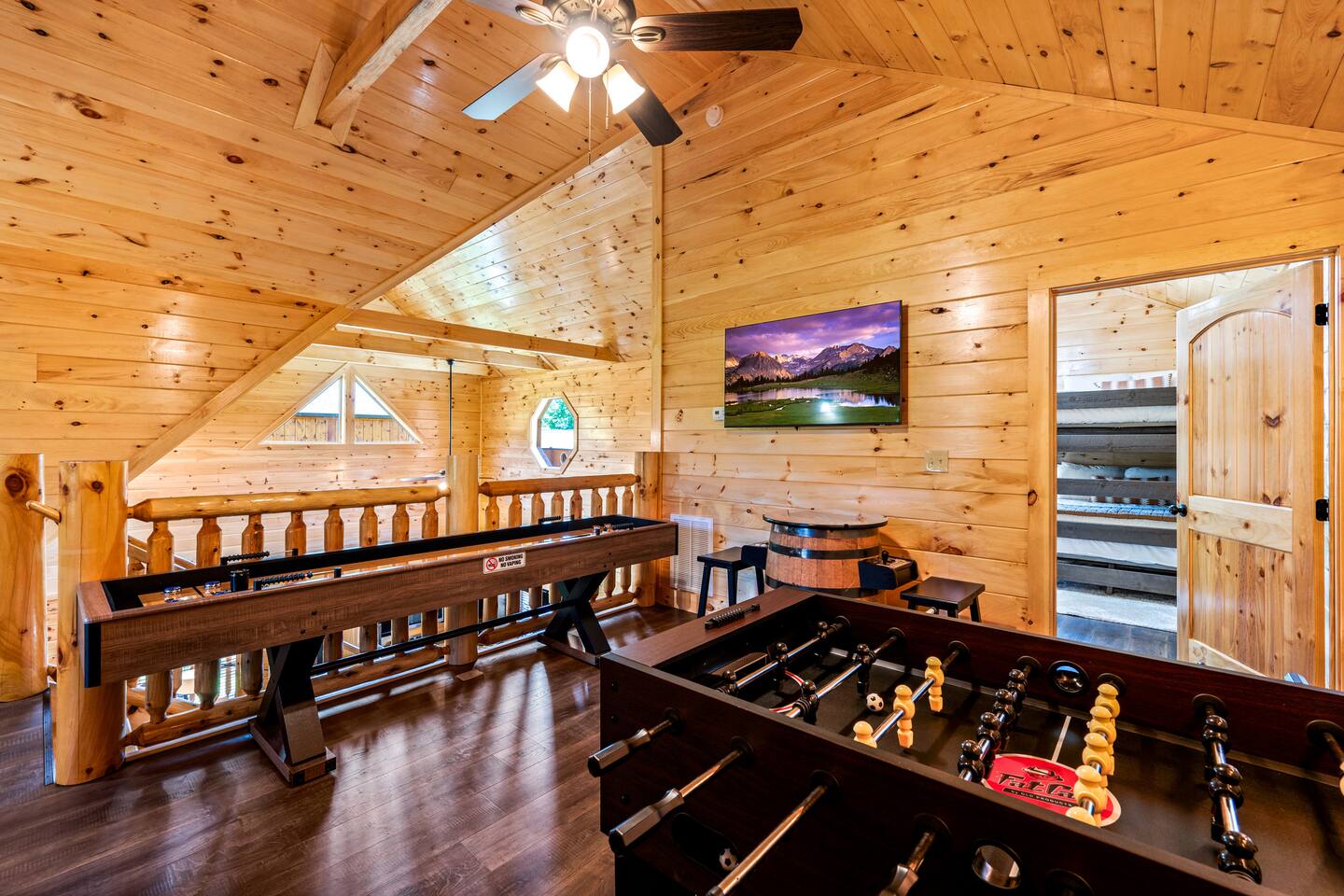 ✨ Welcome to Mountain Luxe Haven – A private luxury cabin with an indoor pool, hot tub, game room, and beautiful decks, located just 3 miles from Dollywood and minutes from the Parkway! This 4BR/4BA retreat sleeps up to 12, featuring en-suite bedrooms, a fully stocked kitchen, cozy living spaces, and endless ways to relax and have fun in the Smokies. 🛏 Layout Highlights: Main Floor: 2 King bedrooms with en-suites, open kitchen + dining for 8, living room with fireplace & large Smart TV, indoor pool room (with keypad entry & child-safety alarm), and deck with hot tub, rocking chairs & grill. Upstairs: Game room + 2 more bedrooms (1 King, 1 Queen-over-Queen bunk) – each with private bathrooms. 🎮 Entertainment & Comfort: Game Room – Foosball, multicade arcade, shuffleboard, board games & flat-screen TV Living Room – Cozy fireplace + Smart HDTV Private Indoor Pool – Heated, fully enclosed & perfect year-round Extras – 7 Smart TVs, washer/dryer, high-speed Wi-Fi, Pack ’n Play, starter toiletries, soap, laundry & dish supplies. 🚗 Parking: Private driveway for 3–4 vehicles 🌲 Prime Location: Quiet wooded setting just minutes from Pigeon Forge, Gatlinburg & top attractions Guests love Mountain Luxe Home for its modern comforts, family-friendly layout, and unbeatable location — the ideal Smoky Mountains escape for families and friends!