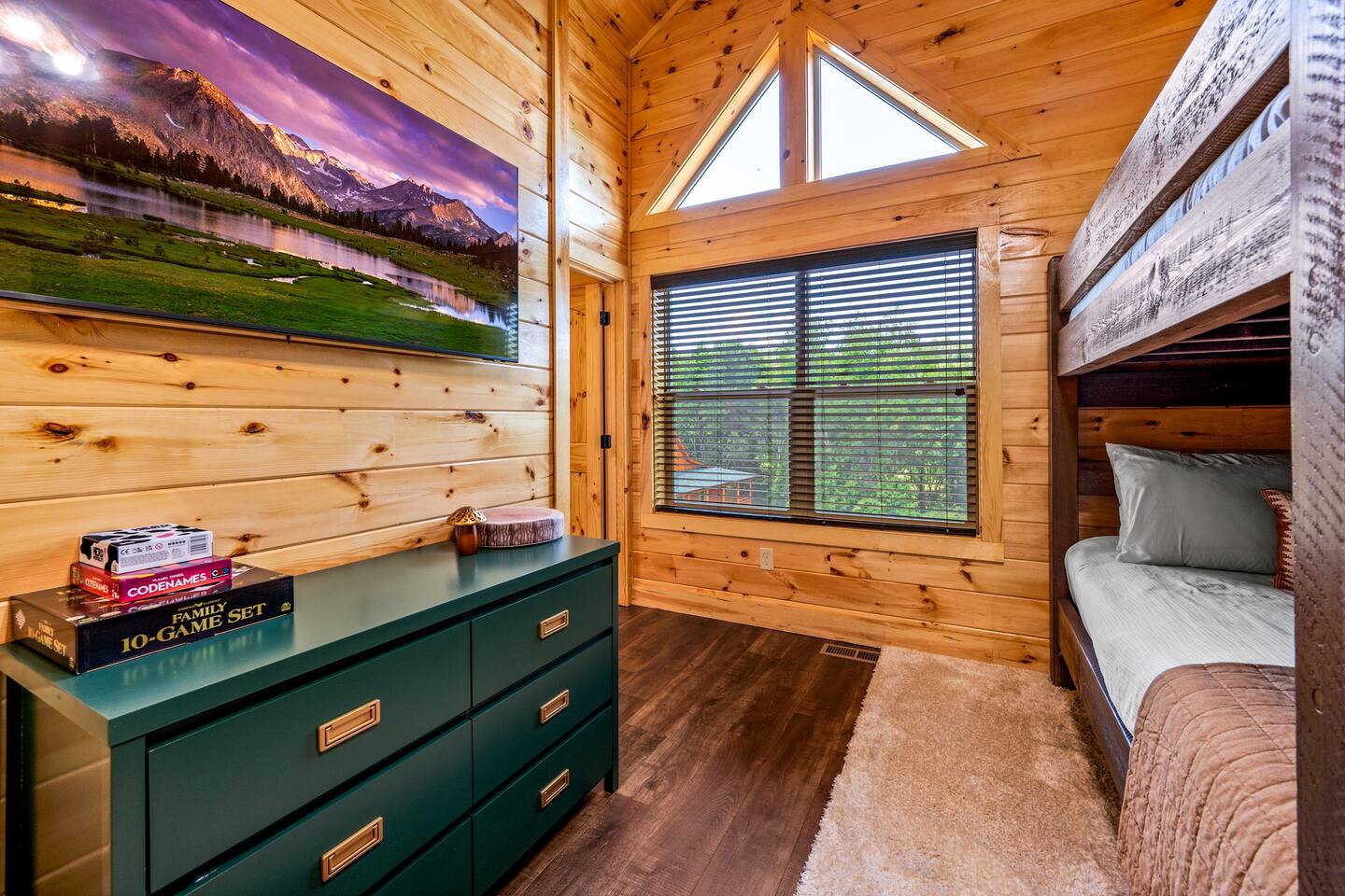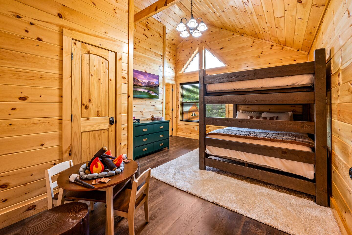 Welcome to Mountain Luxe Haven — a brand-new cabin built in 2024, offering 2,308 square feet of modern comfort in the heart of Pigeon Forge. Designed for both relaxation and fun, this four-bedroom, four-bath retreat is spacious, family-friendly, and pet-friendly. Each of the four bedrooms comes with its own flat-screen TV and private bathroom, giving every guest comfort and privacy. Two bedrooms are located on the main level and two upstairs. Three bathrooms feature walk-in showers, while one main-level suite includes a bathtub — perfect for winding down after a day of adventure. A Graco Pack ’n Play is also available for families traveling with little ones. The fully equipped kitchen makes dining in a breeze, with brand-new appliances including a coffee maker, Instant Pot, toaster, and plenty of cookware and dinnerware. Outside, you’ll find a propane grill with tools, a patio with dining chairs, and a bubbling hot tub for ultimate relaxation. For fun at every age, the cabin includes video games and Smart TVs in each room. The highlight is the private indoor pool, located just off the living room and secured with a keypad lock for children’s safety. Bathroom towels, kitchen towels, and starter supplies are thoughtfully provided to make your stay seamless. Best of all, Mountain Luxe Home sits in a prime location — right in downtown Pigeon Forge. You’ll enjoy the perfect mix of quiet retreat and unbeatable access to top attractions, dining, and entertainment.