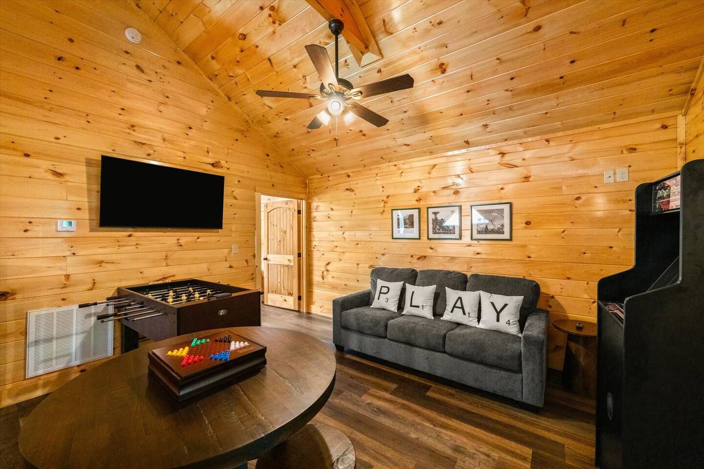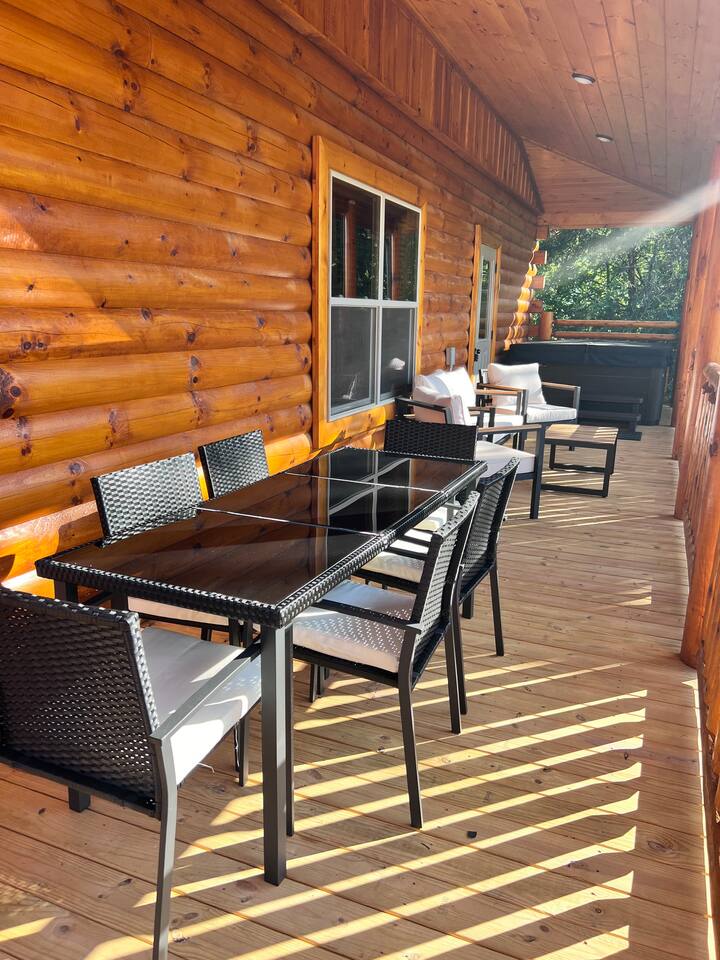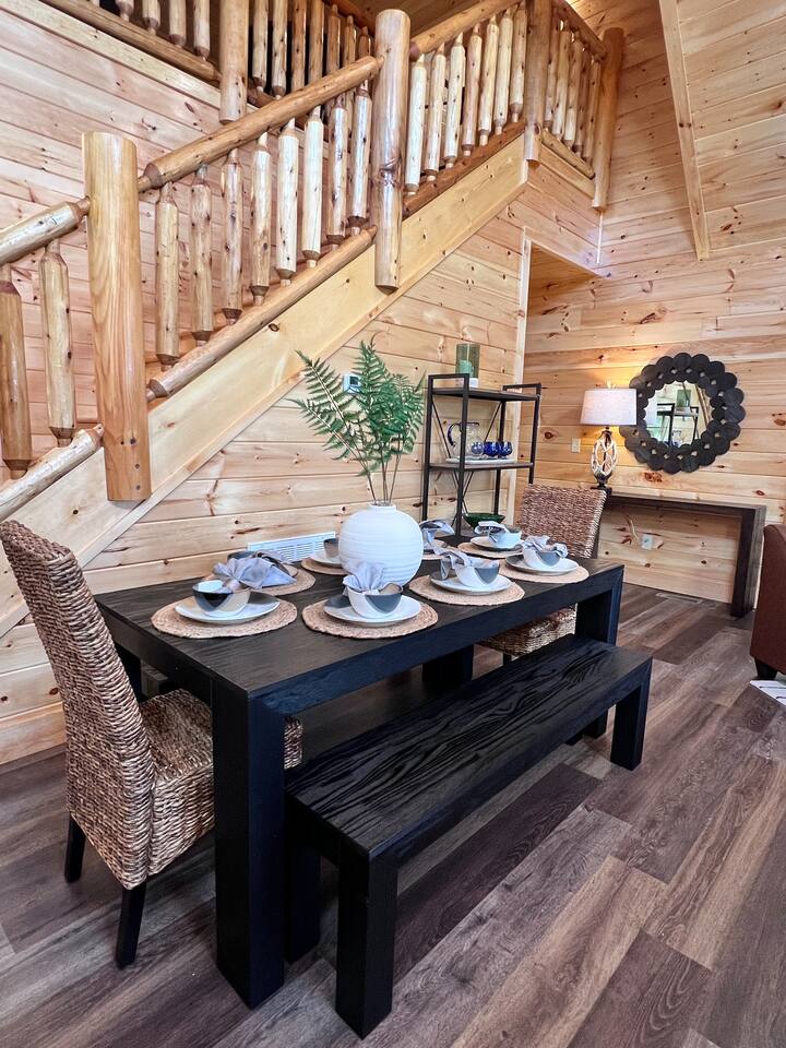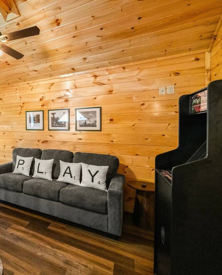 Welcome to Heritage Escape – Your private luxury retreat with an indoor pool, hot tub, game room, and wooded views, perfectly located just minutes from the heart of Pigeon Forge! This spacious 4BR/4.5BA cabin comfortably sleeps 12, with 4 en-suite bedrooms, a fully stocked chef-friendly kitchen, and everything you need for a relaxing getaway. 🛏 Layout Highlights: Main Floor: 2 King bedrooms with en-suites, open-concept kitchen/living room, fireplace, indoor pool room (keypad access), and wraparound porch with hot tub, propane BBQ, and seating Upstairs: Game room + 2 more bedrooms (1 King, 1 with 2 Queens) – all with en-suites 🎮 Entertainment & Comfort: Game Room: Foosball, multicade arcade, board games, flat-screen TV Living Room: Cozy fireplace + large TV Indoor Pool: Private and fully enclosed with ample seating Extras: Washer/dryer, Keurig, Instant Pot, Pack 'n Play, towels, starter supplies (soap, laundry, dish) 🚗 Private Driveway: Parking for 4 cars 🌲 Peaceful Setting: Quiet wooded views, yet only minutes from top attractions Recent guests rave: “Quiet and peaceful, but close to everything,” “Amazing amenities,” and “We can’t wait to come back!” Book Heritage Escape and experience the perfect mix of comfort, convenience, and luxury in the Smokies.