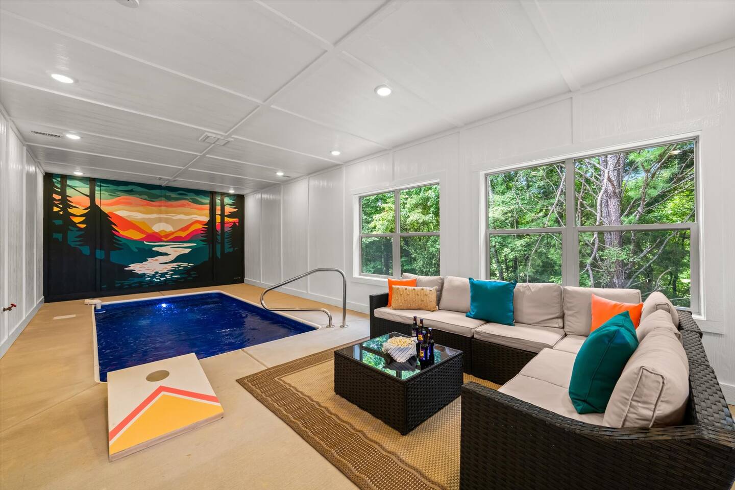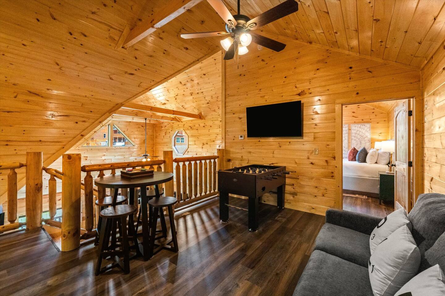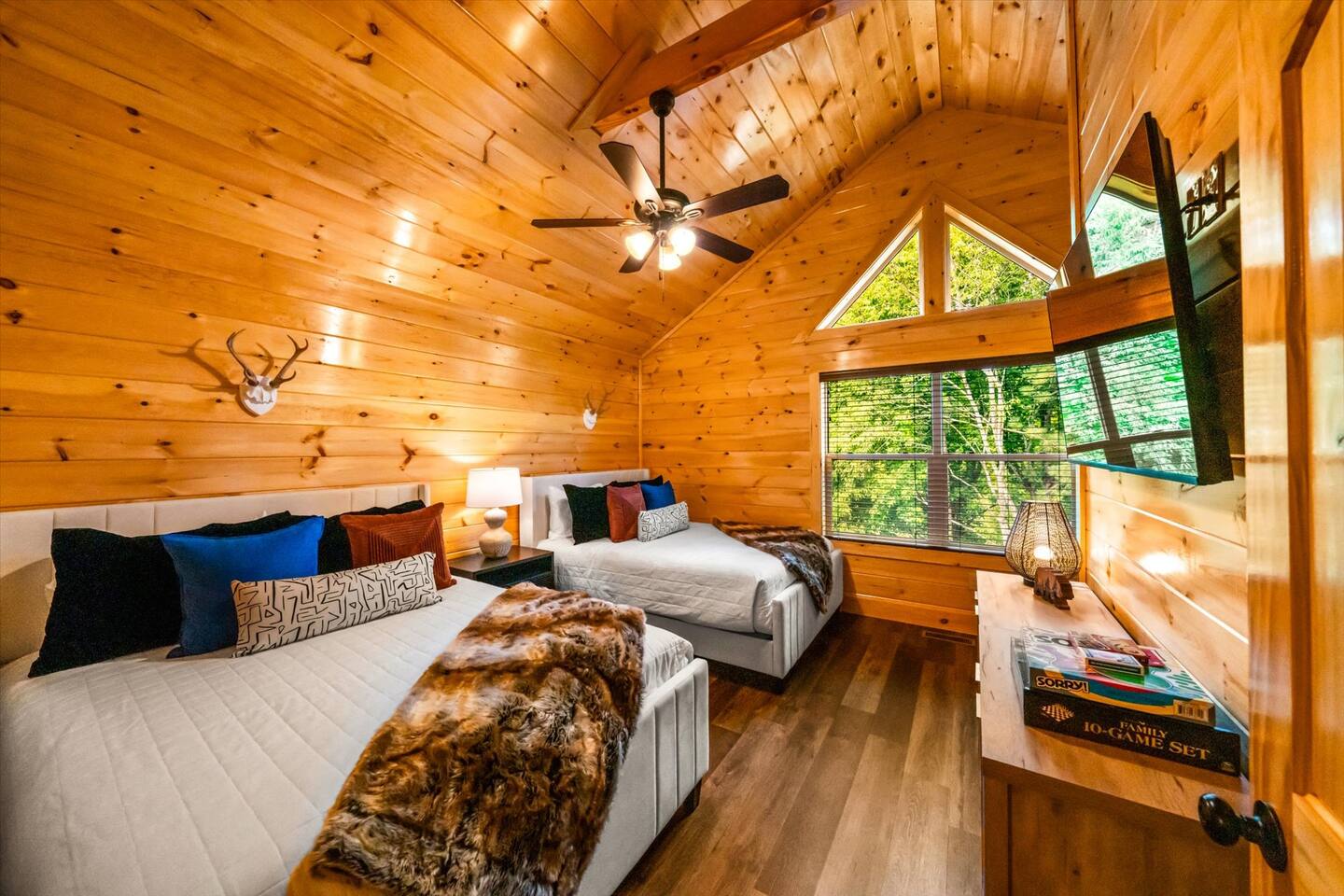 Welcome to Heritage Escape – Your private luxury retreat with an indoor pool, hot tub, game room, and wooded views, perfectly located just minutes from the heart of Pigeon Forge! This spacious 4BR/4.5BA cabin comfortably sleeps 12, with 4 en-suite bedrooms, a fully stocked chef-friendly kitchen, and everything you need for a relaxing getaway. 🛏 Layout Highlights: Main Floor: 2 King bedrooms with en-suites, open-concept kitchen/living room, fireplace, indoor pool room (keypad access), and wraparound porch with hot tub, propane BBQ, and seating Upstairs: Game room + 2 more bedrooms (1 King, 1 with 2 Queens) – all with en-suites 🎮 Entertainment & Comfort: Game Room: Foosball, multicade arcade, board games, flat-screen TV Living Room: Cozy fireplace + large TV Indoor Pool: Private and fully enclosed with ample seating Extras: Washer/dryer, Keurig, Instant Pot, Pack 'n Play, towels, starter supplies (soap, laundry, dish) 🚗 Private Driveway: Parking for 4 cars 🌲 Peaceful Setting: Quiet wooded views, yet only minutes from top attractions Recent guests rave: “Quiet and peaceful, but close to everything,” “Amazing amenities,” and “We can’t wait to come back!” Book Heritage Escape and experience the perfect mix of comfort, convenience, and luxury in the Smokies.